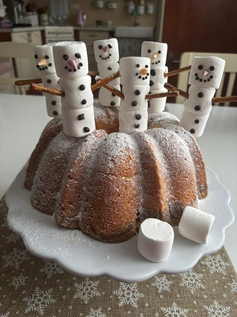 Po tvoření svačina pro vnučky – sněhuláková bábovka…