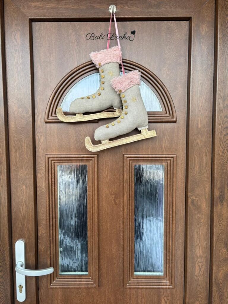 Po Vánocích jsem sundala ze dveří adventní věnec a na prázdné místo ušila brusle.