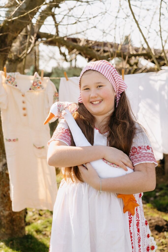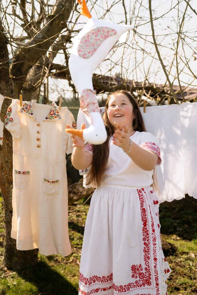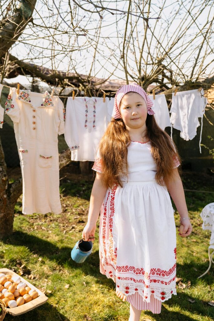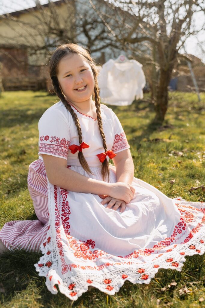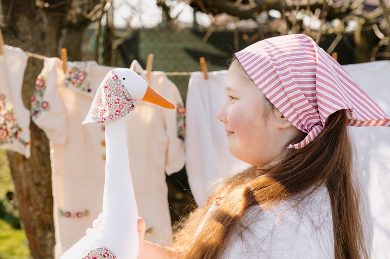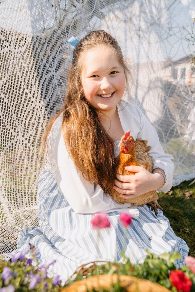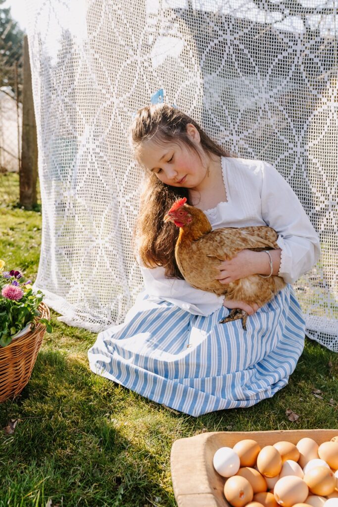 V hlavní roli byla dcera mé kamarádky Hanička, obklopená zvířátky – slepicemi, kočkou a králíčky. (Zvířátka nám zapůjčila její maminka) Veškeré dobové textilie, dekorace a pečené dobroty jsem připravila já, s respektem k tradicím. Jani (www.janaholubova.com) vše krásně nafotila, má cit pro okamžik a dokáže zachytit nejen obraz, ale i pohodovou atmosféru celého dne a radost z obyčejných chvil…