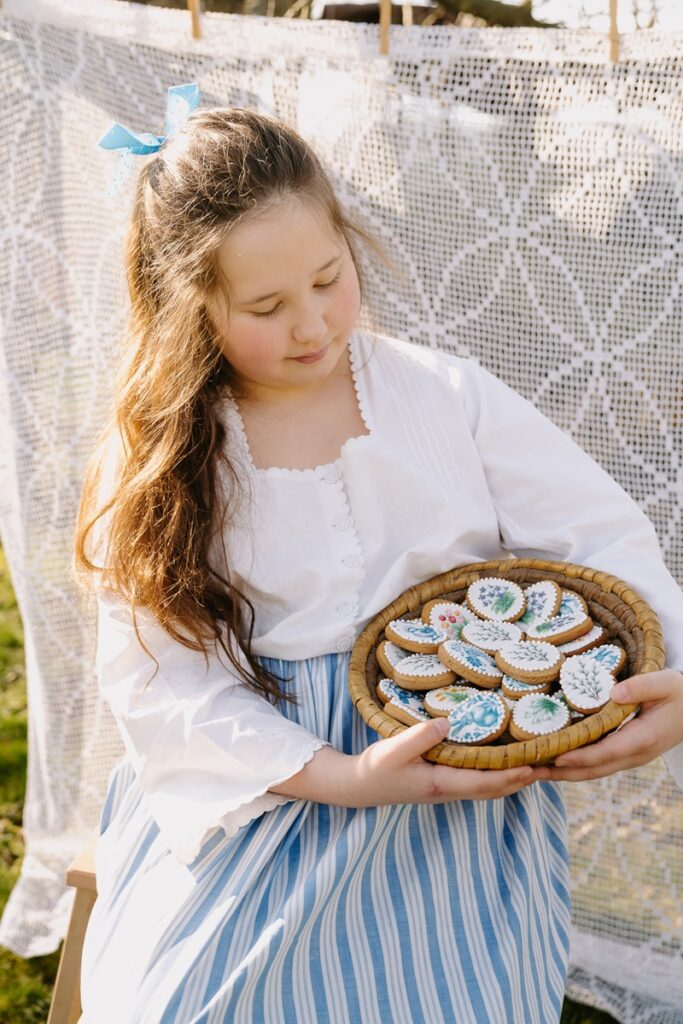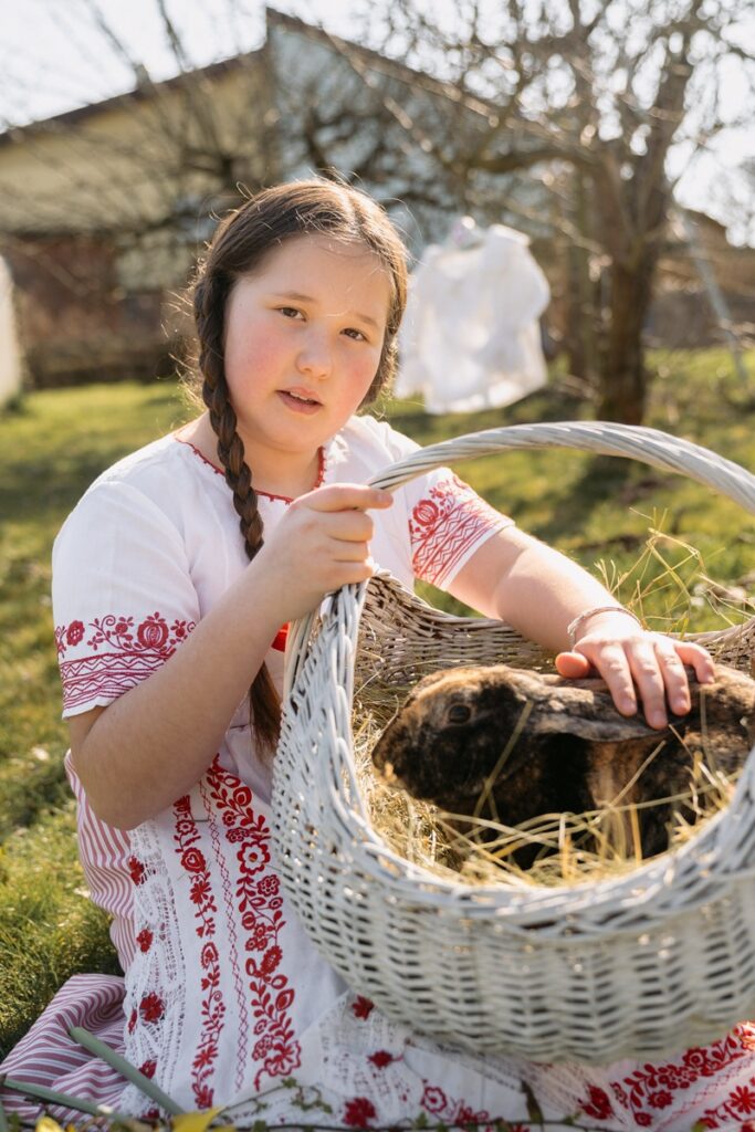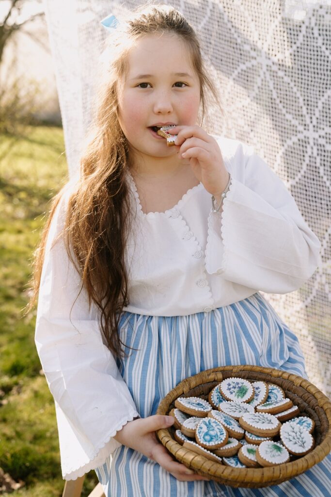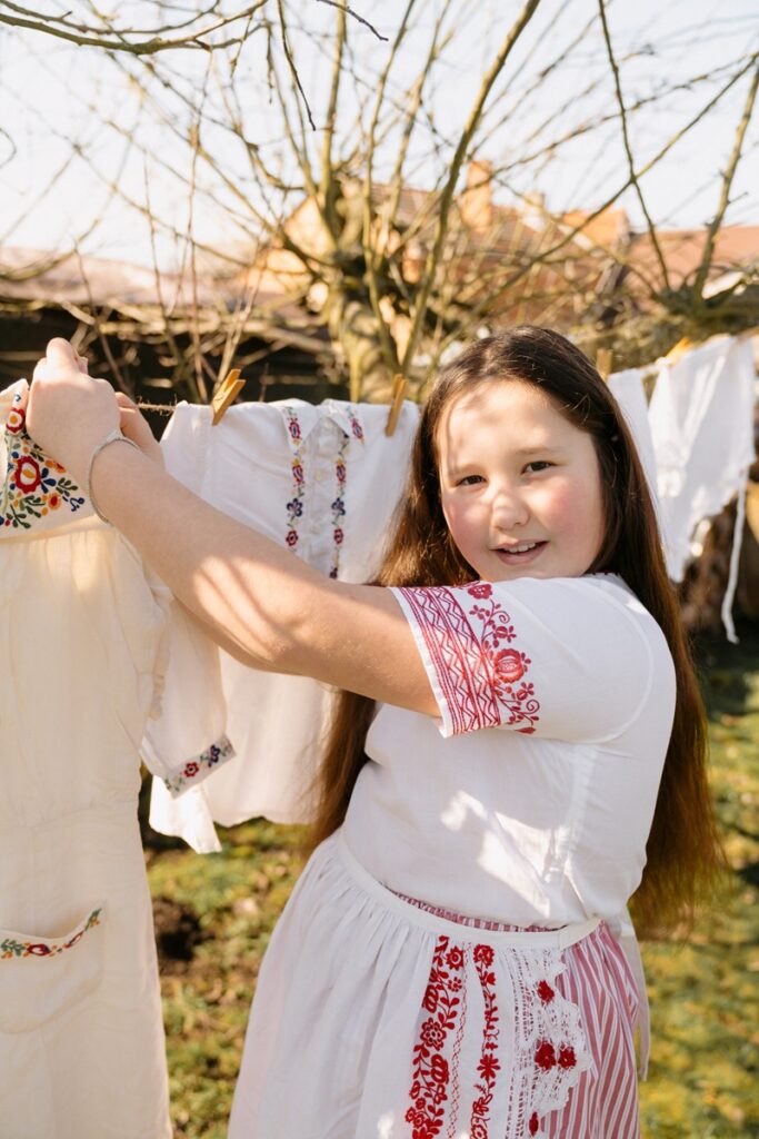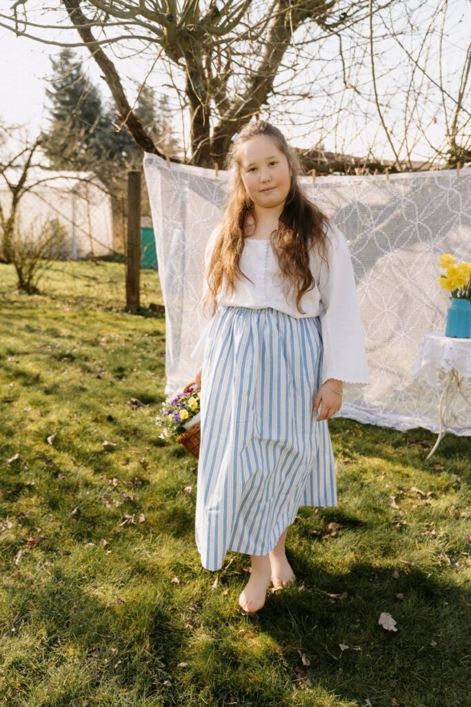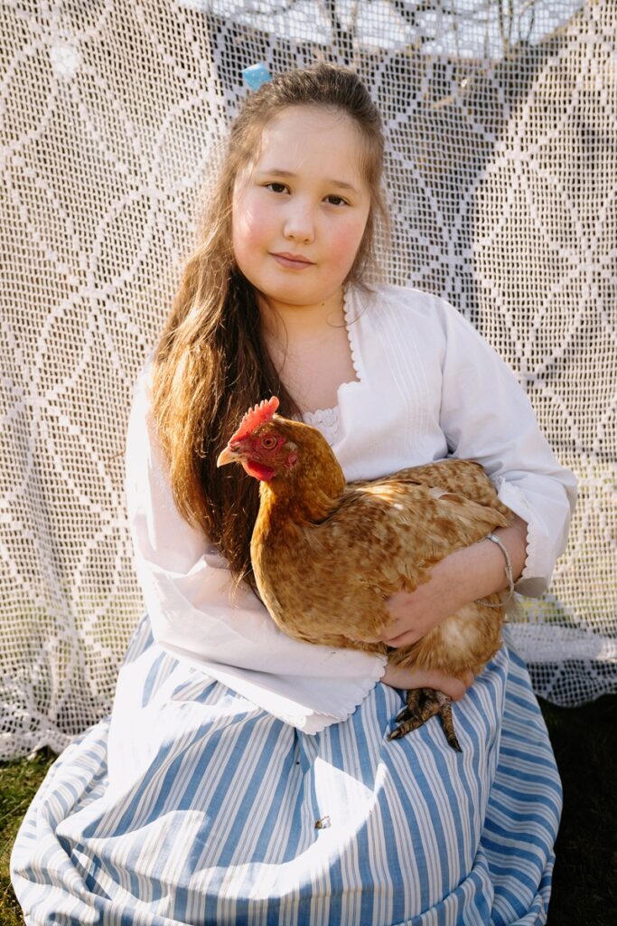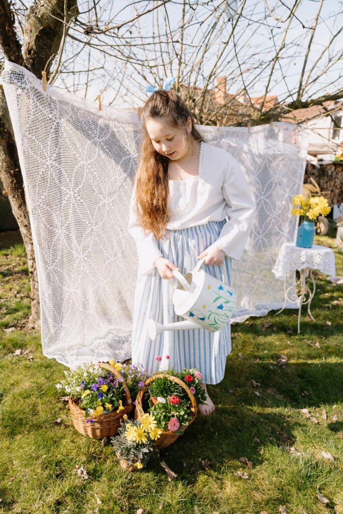 V hlavní roli byla dcera mé kamarádky Hanička, obklopená zvířátky – slepicemi, kočkou a králíčky. (Zvířátka nám zapůjčila její maminka) Veškeré dobové textilie, dekorace a pečené dobroty jsem připravila já, s respektem k tradicím. Jani (www.janaholubova.com) vše krásně nafotila, má cit pro okamžik a dokáže zachytit nejen obraz, ale i pohodovou atmosféru celého dne a radost z obyčejných chvil…