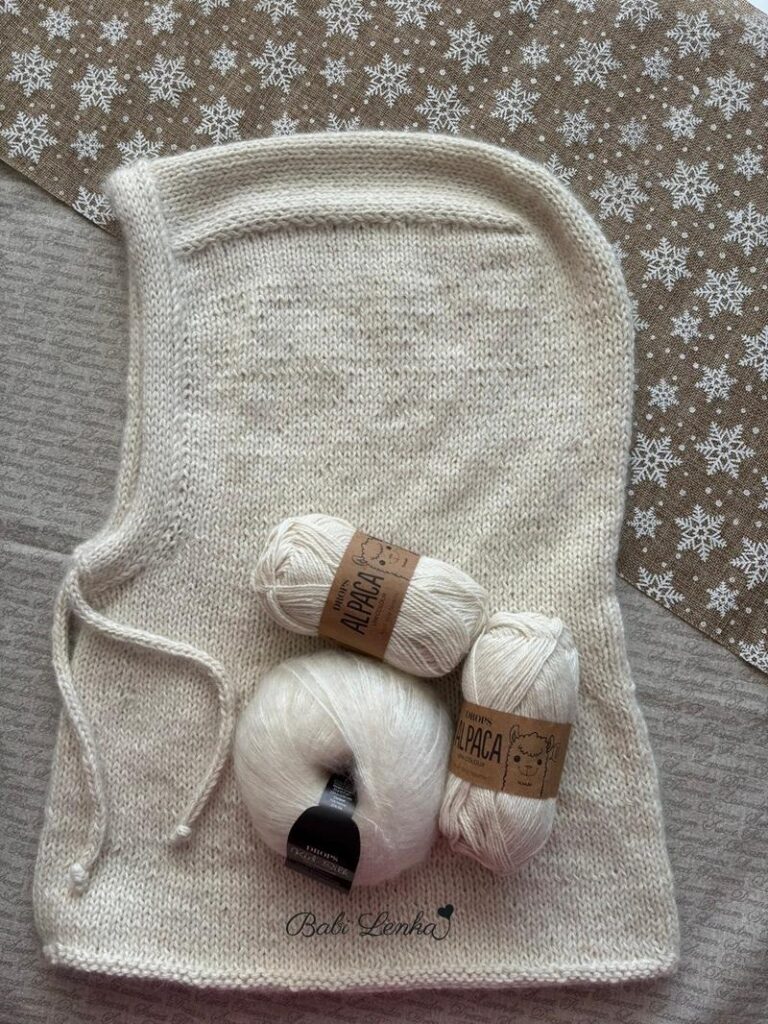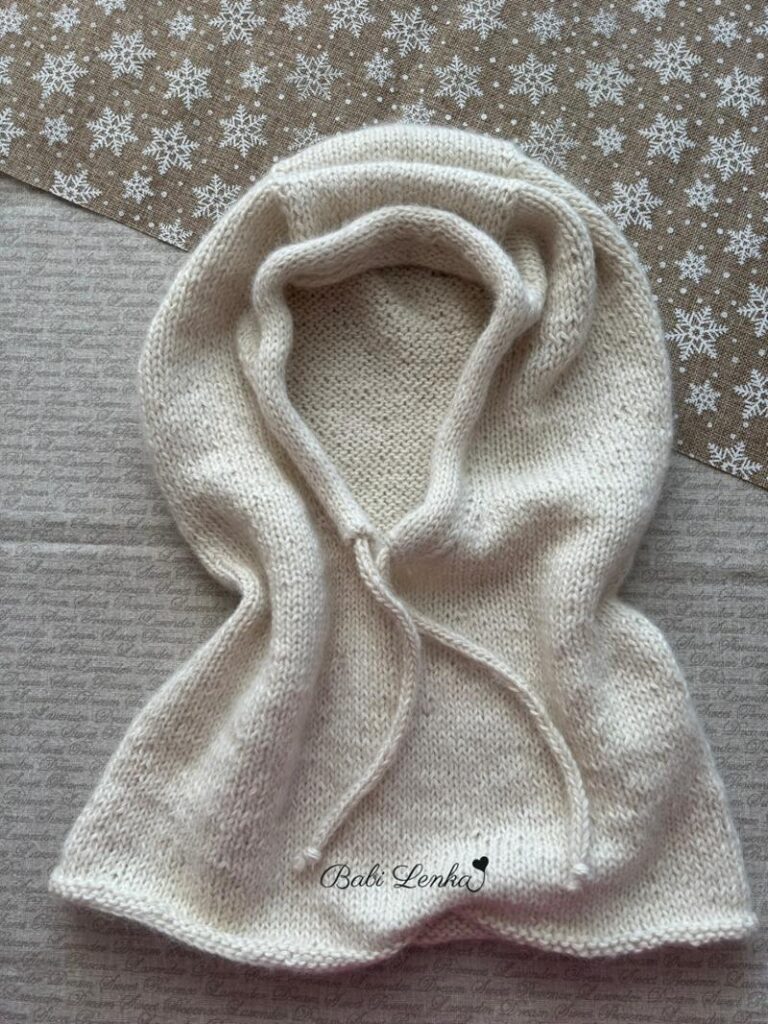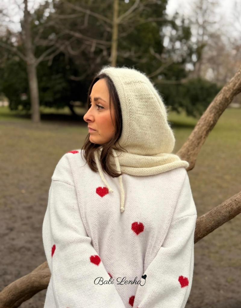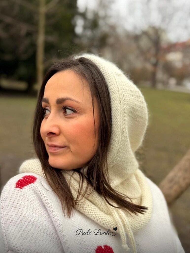 Já jsem neodolala, jednu koupila a moc jsem si ji oblíbila. Pro Jani jsem po příjezdu domů také upletla, vybrala si přírodní barvu. Kukla je vlastně čepice, kapuce a nákrčník dohromady, což je skvělé. Je lehoučká, přesto krásně hřejivá, použitý materiál – alpaka, mohér s hedvábím.