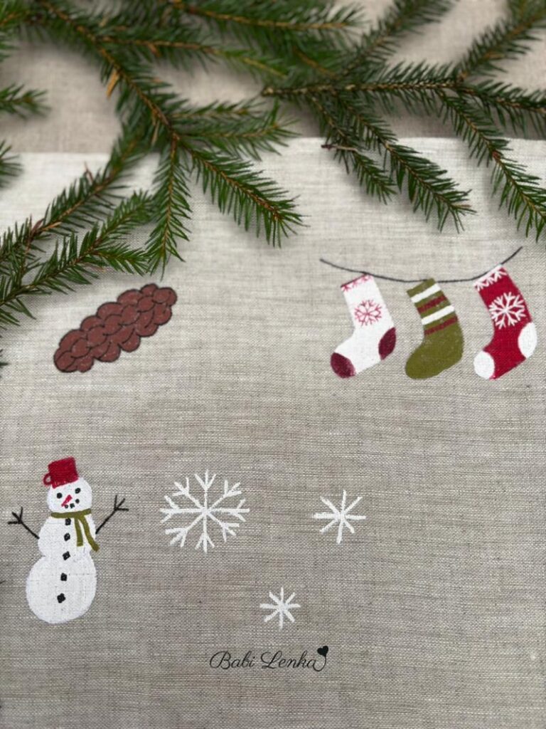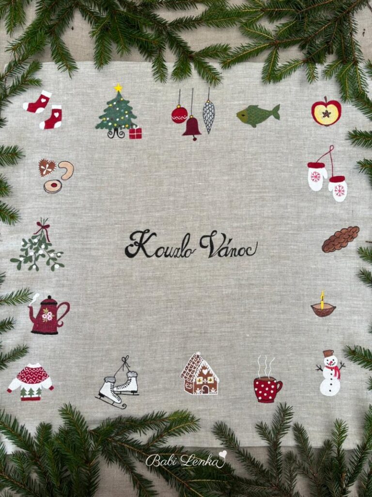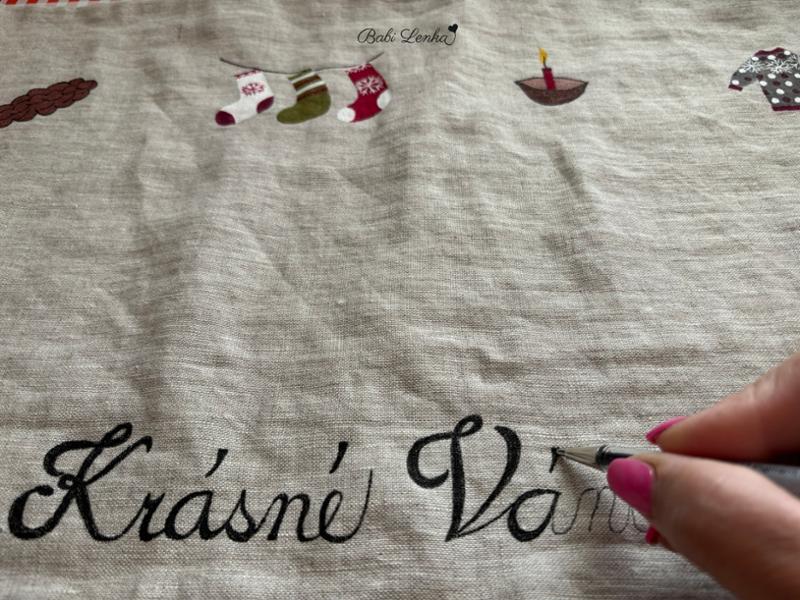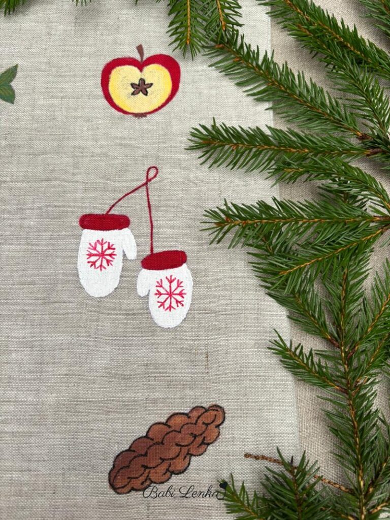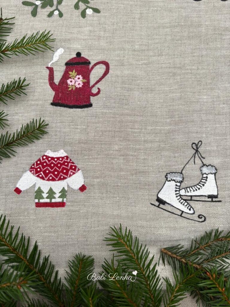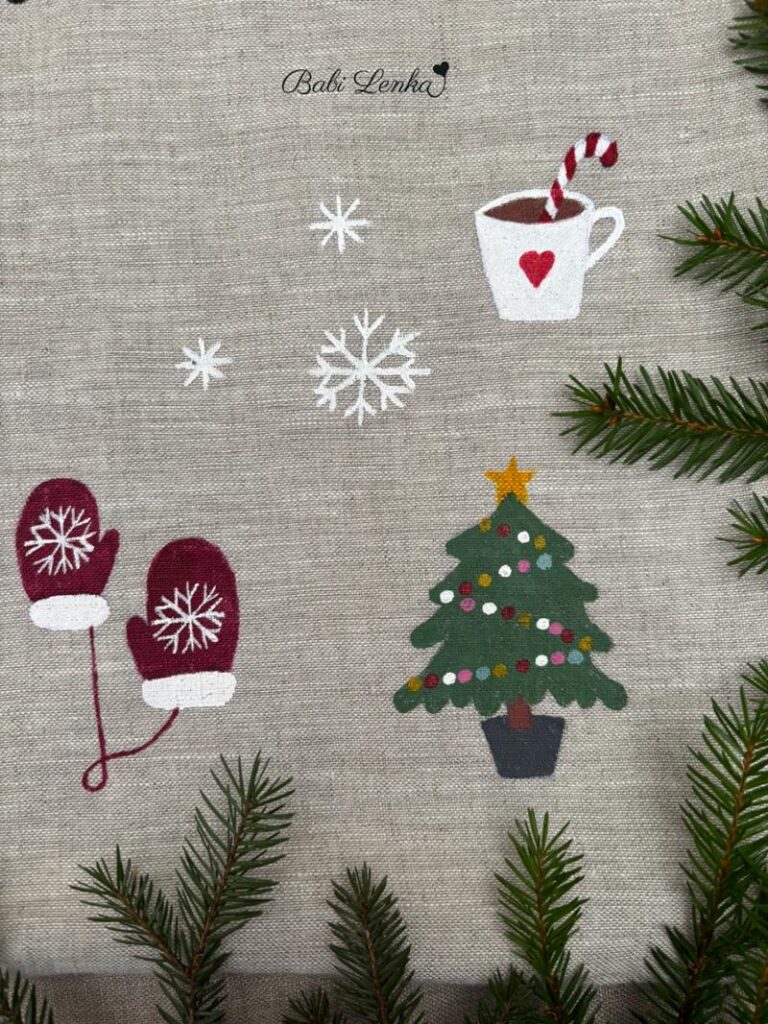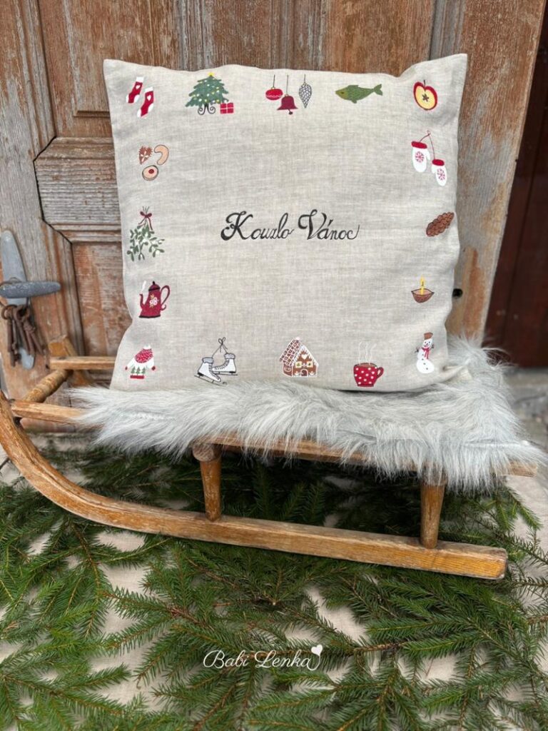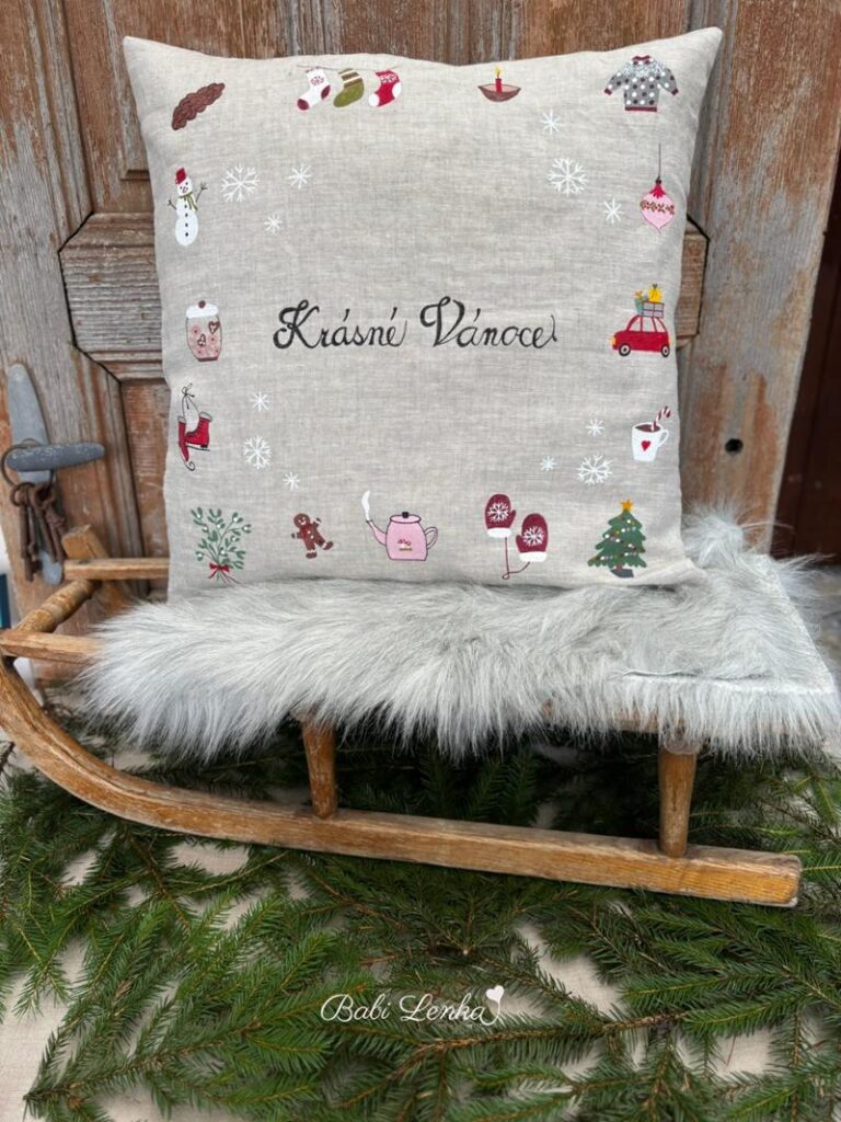 Chtěla jsem na nich zachytit motivy, které k Vánocům patří a mám je ráda . A tak se na lněné látce začaly postupně objevovat – vánočka a cukroví, upletený svetr s ponožkami a rukavicemi, svítící stromeček a větvička jmelí pro štěstí, hrneček s horkou kávou a další a další … Při malování jsem na chvíli zapomněla na všechno trápení, které teď mám a jen si užívala každý tah štětcem. Jeden z polštářů už našel svůj nový domov jako dárek a druhý zůstane u nás v rodině.