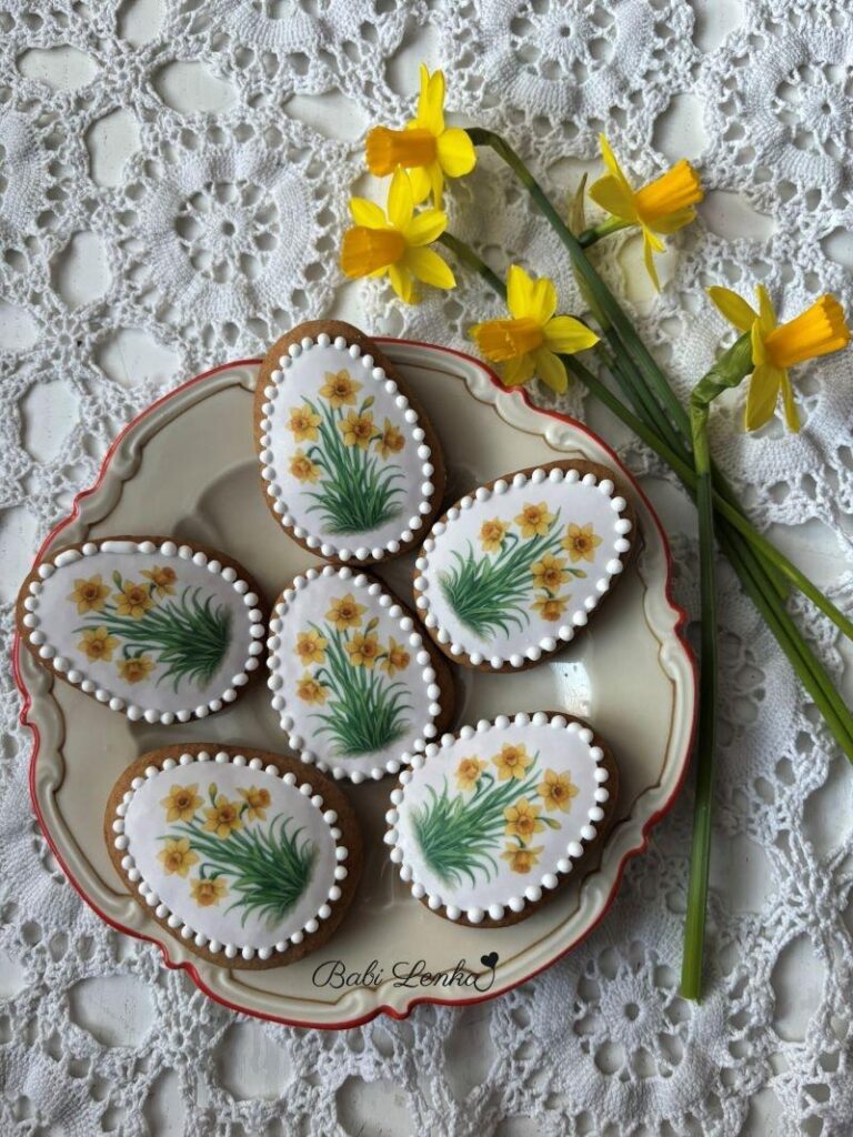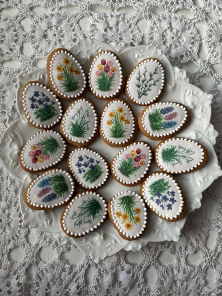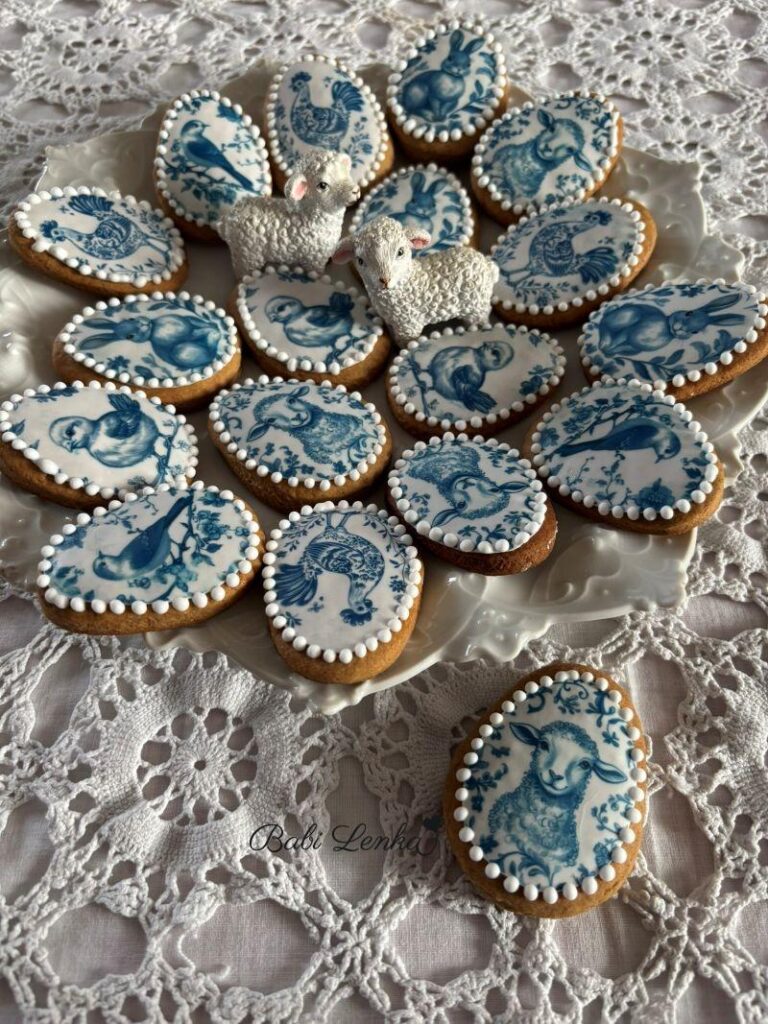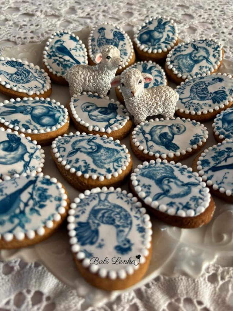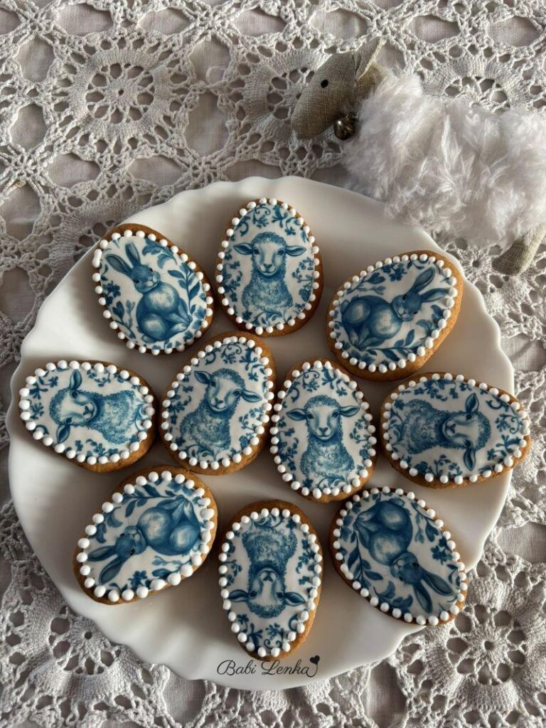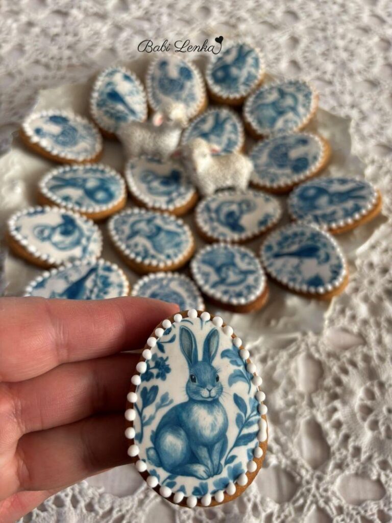 Protož je takhle nezdobím poprvé, vím, jak snadno se s nimi pracuje a jak hezky na perníčcích vyniknou. Tentokrát jsem si vybrala jedlé obrázky ve tvaru vajíček s jarními kytičkami a druhou variantu s modrými porcelánovými motivy.