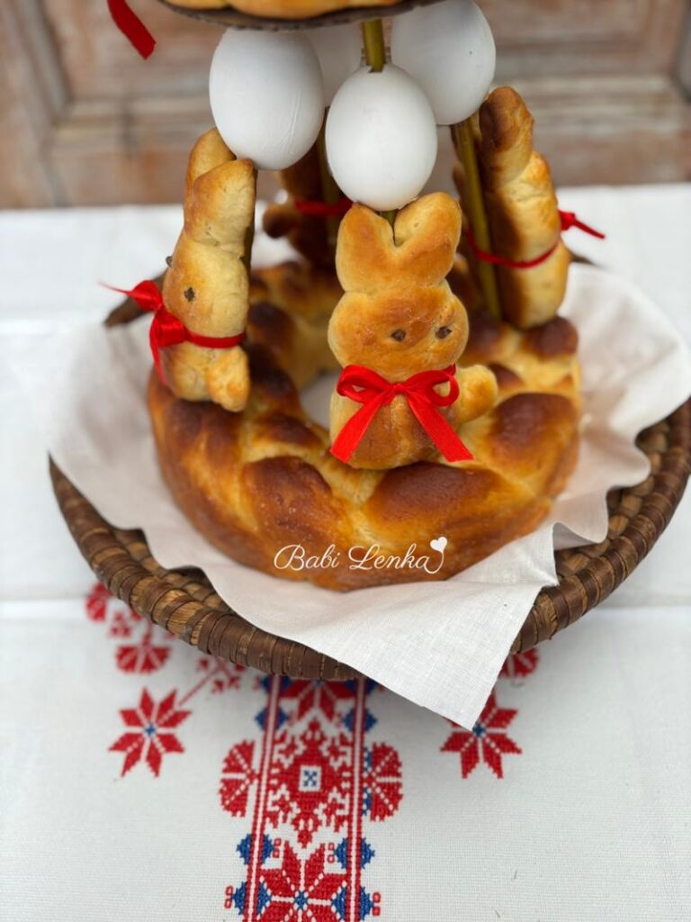 Vrkoč je pečivo, které symbolizuje jaro, probouzení přírody a plodnost. Ten můj se skládá z pletených věnečků, zdobí ho vrbové proutky, vyfouklá vajíčka, červené mašličky a malí zajíčci, kteří k jaru patří. Dříve se vrkoč vystavoval za oknem vedle beránka, u nás zdobí stůl v kuchyni.